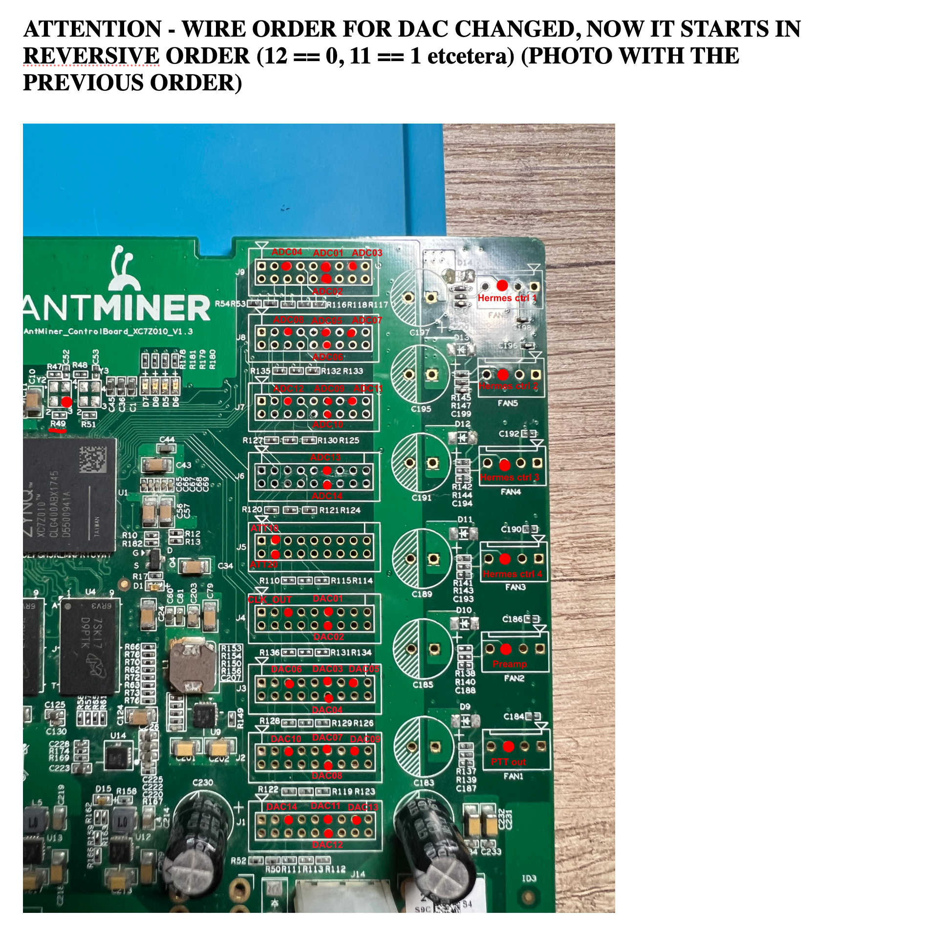 I reordered wires for the DAC, screenshot from the howto page: