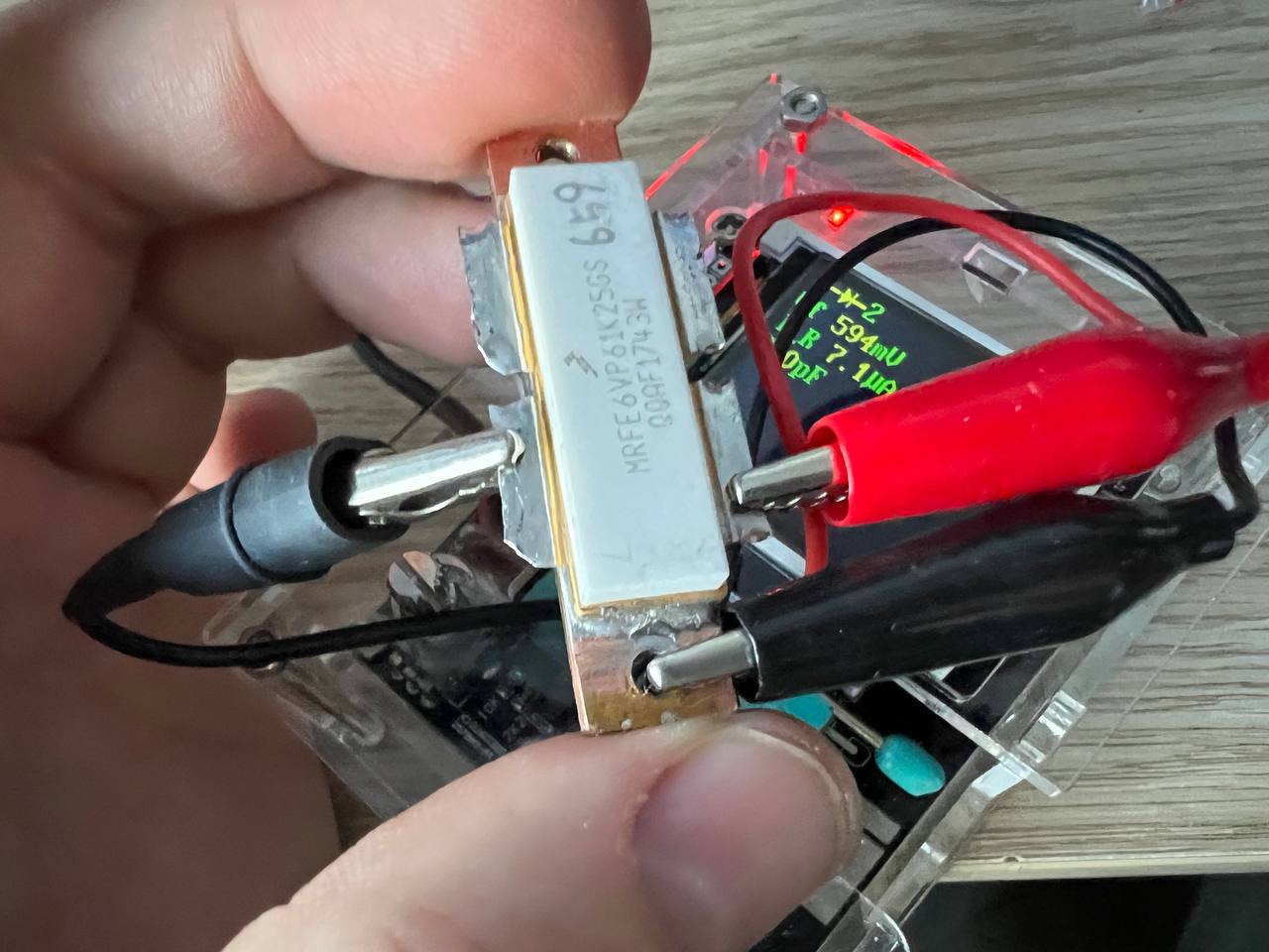 I slightly dented the transistor leads because I soldered and desoldered it. (It’s better to pry the end of the lead; it won’t look very aesthetically pleasing, but it will reduce the risk of breaking the lead because it won’t bend at the base.) I thought there is a problem with transistor because right half was heating more than left: